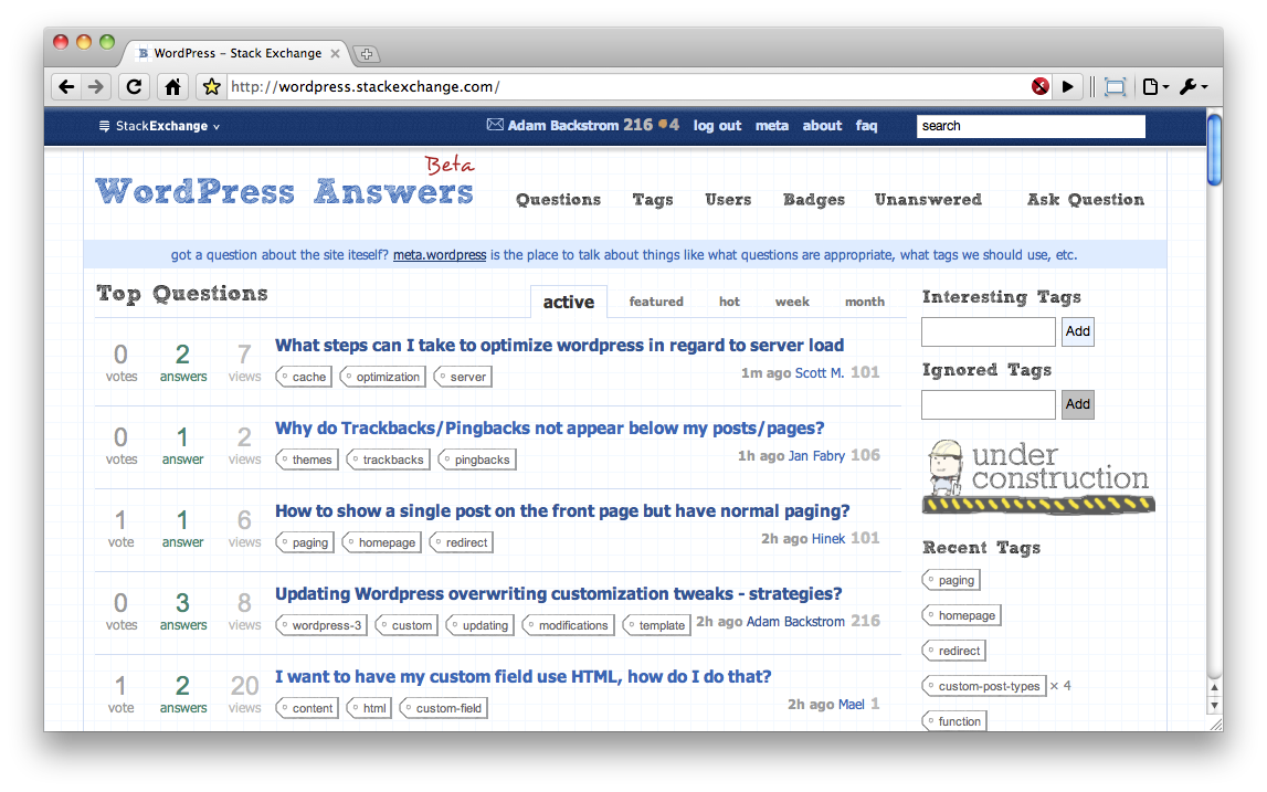 "WordPress Answers," the [StackExchange][]-powered question and answer site for [WordPress][], has made it out of [Area 51][] and into a week-long private beta.